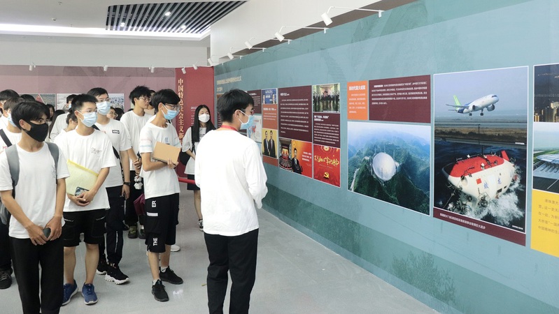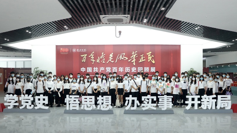 最后,师生前往科技楼A座一楼一起参观了“百年恰是风华正茂”党史宣传展。在学生宣讲员陈星宇同学的领学下,同学们重温了中国共产党百年光辉党史,深受教育和启发。吃水不忘挖井人,中国共产党人的伟大精神将激励着团学干部们,不断增强“四个意识”、坚定“四个自信”、做到“两个维护”,树立远大理想,锤炼品德养,从身边小事做起,从服务同学们和老师做起,让青春之花在人民需要的地方绽放绚烂光彩。