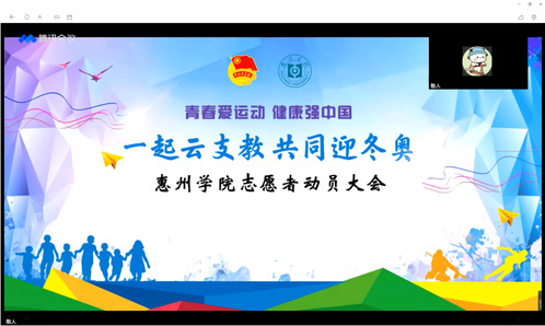 为深入学习贯彻习近平总书记关于北京冬奥会各项工作的重要指示精神,认真贯彻落实全民健身和健康中国国家战略、共青团中央《北京2022年冬奥会和冬残奥会青少年行动计划》,持续提升青少年体质健康水平,进一步在广大青少年中弘扬奥运精神、推广冰雪运动、宣传冬奥文化,更好地开展“一起云支教 共同迎冬奥”活动,我校于2022年1月17日下午15:00采用线上直播的方式召开了惠州学院2022年“一起云支教,共同迎冬奥”志愿者动员大会。