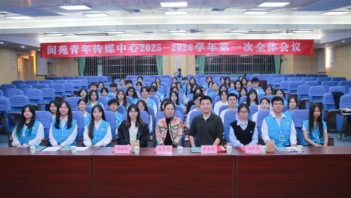 2025年11月28日晚,阆苑青年传媒中心2025-2026学年第一次全体会议在图书馆报告厅举行。校团委书记田翠华、校团委组织宣传科科长杜建聪参加,各校级团学组织代表以及阆苑青年传媒中心全体成员参加会议,主任团成员曹毅主持本次会议。