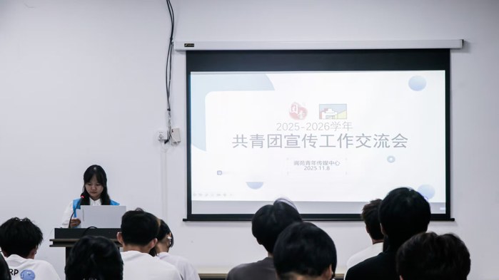2025年11月8日,我校2025—2026学年共青团宣传工作交流会在少康楼210会议室举行。参与本次会议的有各校级组织负责人、二级学院宣传部门代表以及阆苑青年传媒中心工作人员。会议伊始,阆苑青年传媒中心主任团成员李雪艳发言。她围绕中心“引导青年成长,讲述青年故事,彰显青年风貌” 的宗旨,介绍中心作为校团委宣传工作的重要依托,是学生关注校园生活、表达意见见解、获取会议资讯的核心渠道。随后,她介绍了校团委阆苑青年传媒中心本年度的重点工作开展情况。随后,各部门负责人依次介绍职能:秘书组作为统筹核心,负责活动组织、信息传达、宣传品管理及校级组织大事记收集整理,发挥协调保障与上传下达的桥梁作用;文编组聚焦文字编辑,运营校团委网站、官方微博,把握时事热点开展宣传报道,以文字展现校园风采、传递活动信息;网络运营与设计组作为创意及新媒体中坚,负责团委微信公众号运营、海报LOGO 等设计,致力打造校园原创设计品牌与有影响力的共青团公众号;双摄组承担团学活动摄影摄像工作,运营官方视频号、抖音号等平台,以镜头语言宣传推广团学组织及活动,彰显校园文化内涵。会议第二项议程为交流互动环节。中心各组代表明确工作对